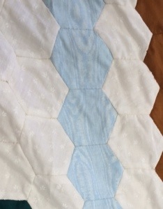 Could you check your stash for any of this light blue printed moire cotton fabric from the ’90s? LR has this UFO of her mother’s but needs the fabric to finish the basket quilt. Thanks!