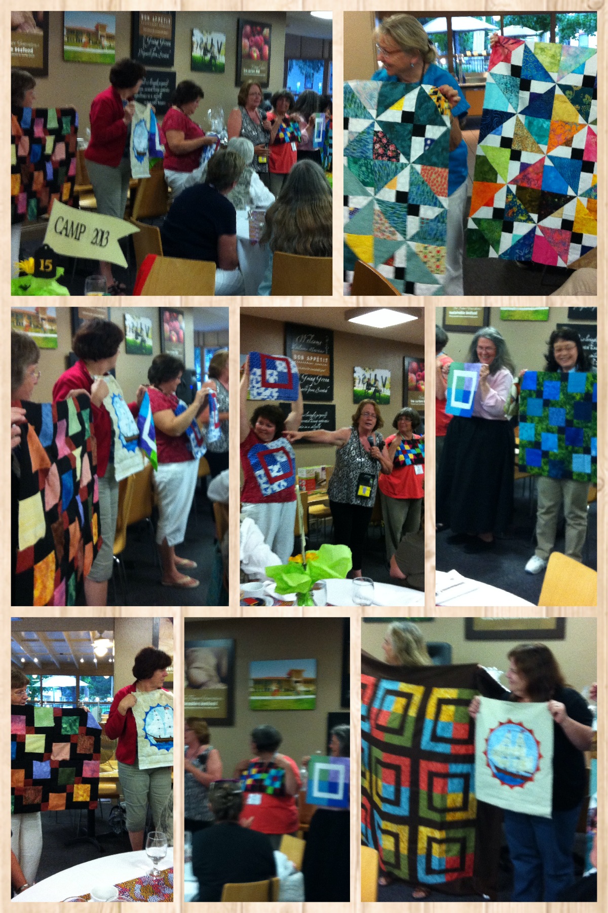 The highlight of Camp week for me was the Student ShowNTell. Seeing the creative and varied projects of all the students was amazing! And when my students stepped up with all their projects I got all choked up. The color, the workmanship, the talent of these quilters just stunned me…