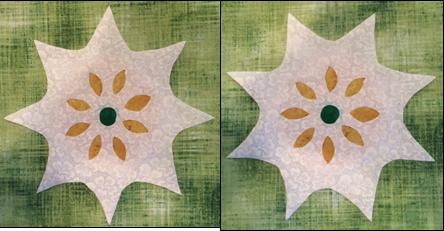 I still don’t have my block done, so I decided I should finish the pattern and just post without a picture (Picture added 2/24/14).  This Snowflake has a bit of reverse appliqué to spark it a bit.  If you have trouble with the block, I’ll try to finish mine and post it tomorrow or Tuesday.  A picture, they say, is worth a thousand words… so we will see!  (Note that you have a choice of orientation options.)