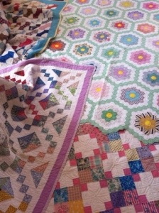 With many thanks to Grandma and her needle skills, I have patterned this quilt in three sizes to be made from a collection of 10″ squares (from a swap, a purchased layer cake/Hoffman Cracker collection, a grouping of Fat Quarters or from your stash like Grandma did!) The only thing you need yardage for is the background and the border. What will you name your version of Grandma’s Quilt?
