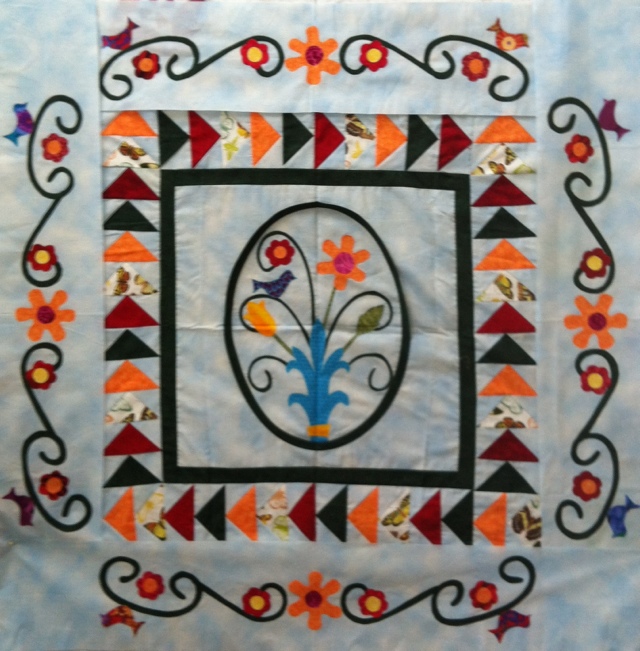 The mystery is solved. The appliqué border for the Spring Medallion quilt is ready… And it is beautiful, don’t you think? And truly the pic doesn’t do it justice.