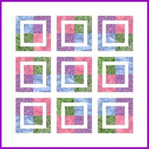 So, I simplified the Framed design, stripping away some of the blocks, spacing the blocks out a bit more with wider Sashing and removed the color in the border. The result is cleaner lines and an even simpler construction.Do you need more of a quilting “fix”? There is always a lot going on on this site, like our ongoing Spring Medallion Quilt, our Doll Quilt/Table Topper series, more of the Quilter’s Alphabet Block of the Week and our monthly 8″ swap/scrap quilt patterns. Browse around, there’s even more than that to see. And be sure to look at our Etsy site for even more patterns.