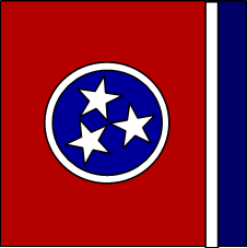 Flag:  The three stars on the flag represent the three different land forms in Tennessee. Mountains in the east, highlands in the middle and lowlands in the west. On the flag these regions are bound together in an unbroken circle. The field is crimson with a blue background for the stars. The final blue strip relieves the sameness of the crimson field and prevents the flag from showing too much crimson when it is limp.